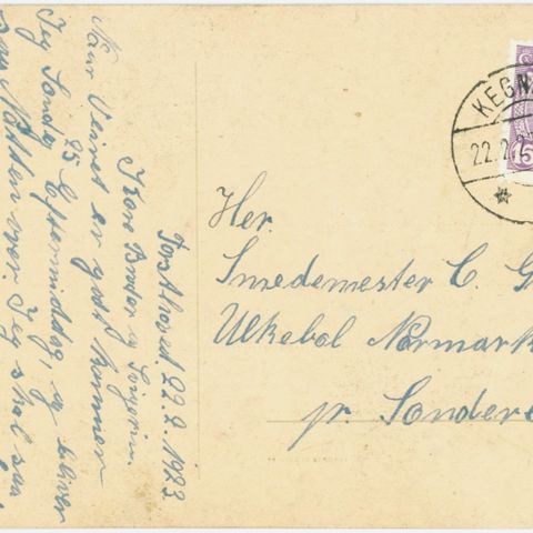 Kegnæs. Brev med brotypestempel, 1933