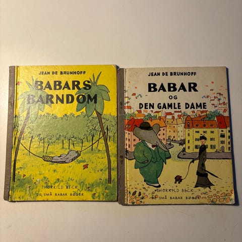 Babar børnebog med grøn hardcover. Bogen indeholder illustrationer og fortællinger om elefanten Babar. Velegnet til børn og samlere af klassiske børnebøger. Laurent de Brunhoff. Sender ikke for køb under 200 kr.