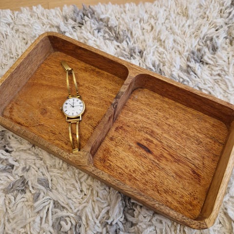 Rund bakke med en guldskinnende kant i metal og en spejlbund, der er en elegant tilføjelse til din boligindretning. Perfekt til præsentation af dine foretrukne cocktailglas, til accessories og parfumer eller til iøjnefaldende arrangementer med stearinlys. Højde 6 cm. Diameter 30 cm.