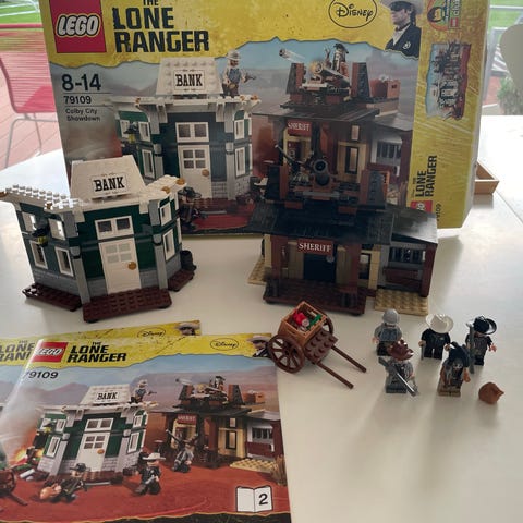 LEGO Lone Ranger byggesæt til aldersgruppen 9-14 år. Indeholder flere mindre byggesæt med tema fra Lone Ranger, inklusive figurer og tilbehør. Sættene er lavet af plastik og inkluderer forskellige modeller til samling og leg.