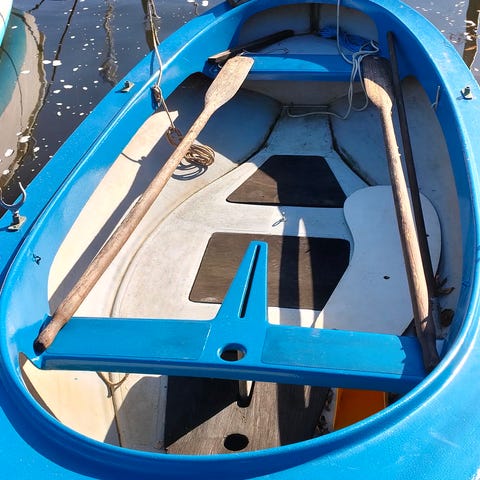 Stabil Lynæs 12 jolle. Er komplet med fok, storsejl, mast, sværd,, ror, åre, åregafler og motor beslag, masten er dog knækket. Den er malet og ser ud som de første tre billeder.