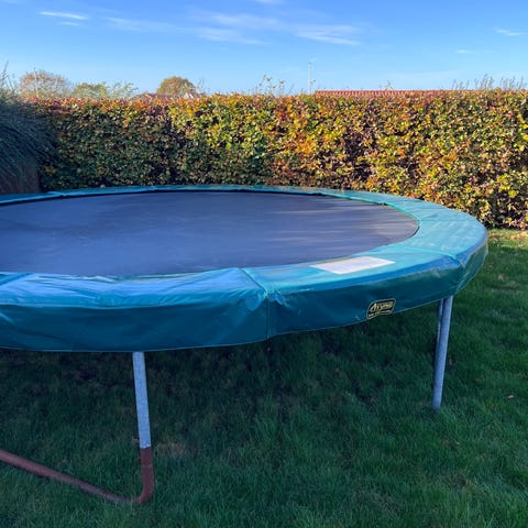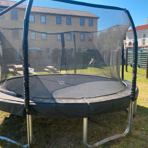super fin trampolin købt til sommerhus men været slået op 2 gange i sommerferien. Den står derfor rigtig fin. Børnene brugte den dog ikke sidste gang og den skal derfor finde nogle nye børn :-) Den er pakket sammen og klar til afhentning: