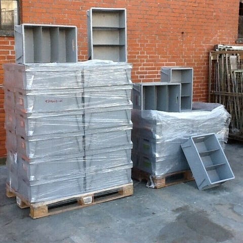 En del brød- og mælkekasser, som også passer i Euro-kasse-mål