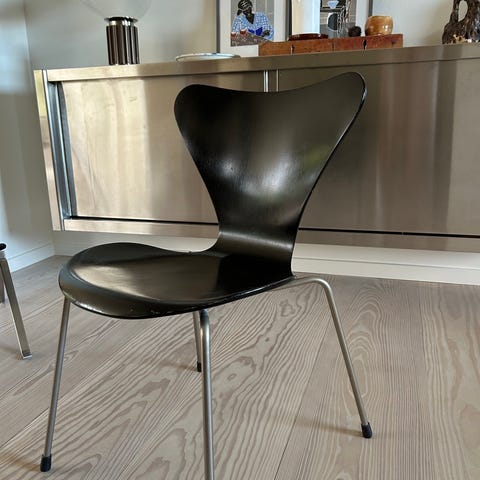 Fritz Hansen Arne Jacobsen Series 7 Stol Sort Laminat Stålben