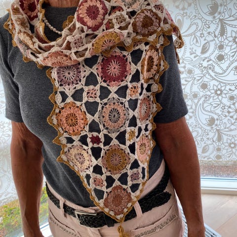 Flot hæklet tørklæde i eget design med inspiration fra Sophie Digard.