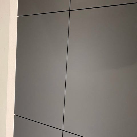 2 Højrehængt låge — 60 × 200 cm — Greb venstre midt kr. 1300 stk. (har fungeret som front for frys/køl, så har skruehuller på bagside, som nemt kan spartles med træspartel.)
