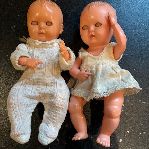 2 Rosebud dukker fra 50'erne. Den ene med originalt "rygmærke" og original flyverdragt