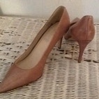 Stort set ubrugte klassiske stiletter sko, (brugt 1 aften indendørs) i smuk farve. Nypris 449 kr, farven er nougat rosa, pudder, str. 40, 5th Avenue. Læder