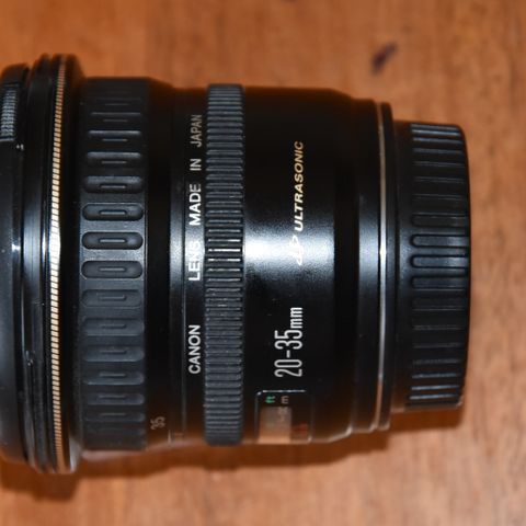 Canon EF 20 mm f2.8 USM ( ultrasonic motor) hurtigt, lydløs, 100% OK. Skarpe billeder. Ny pris omkring 4000 kr. Komplet. Medfølger:
