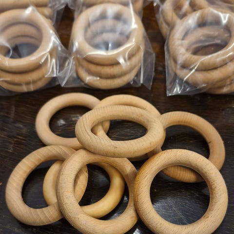 Træringe, fint forarbejdede x 9. Violet. Diameter 3,7cm. Vejer 30g.