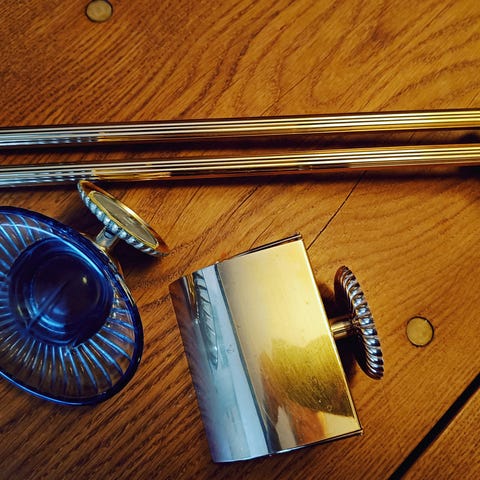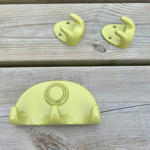 Stilfuld badeværelse artikeler som består af håndklædetør, håndklæde holder, toiletpapir holder, og tandbørste holder. Perfekt hvis, man vil friske sit badeværelse op. Sælges helst samlet