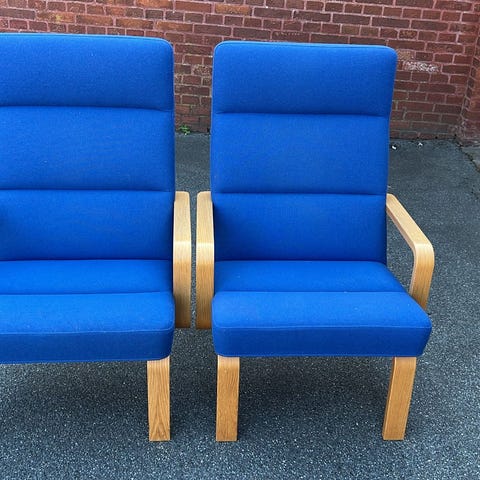 2 Opus hvilestol i alcantara , samt Hans Bølling bakkebord i massiv kirsebær!