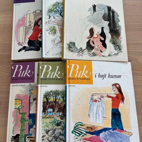 Lisbetti Werner Puk Børnebøger Sæt bestående af 9 bøger: 'Puk vinder igen', 'Puk gir sig ikke', 'Puk i sneen', 'Puk kommer til hjælp', og 'Puk ta'r chancen'. Bøgerne er illustrerede og henvender sig til børn. Tekst og illustrationer følger karakteren Puk i forskellige situationer.