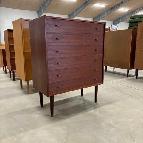 Teaktræs kommode med tre skuffer. Måler 75cm lang, 70cm høj og 43cm dyb. med lidt brugsspor. Pris 1750kr.