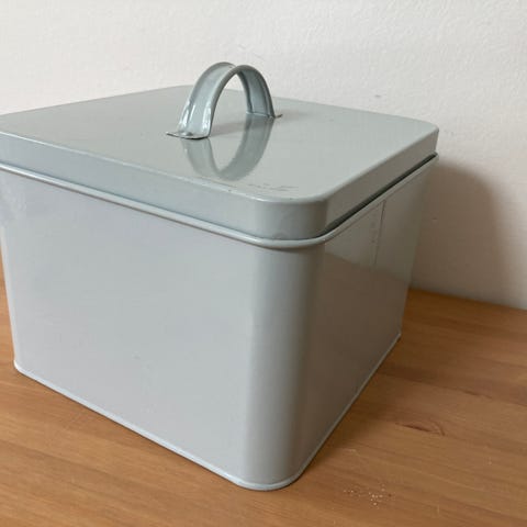 Flot metal beholder til opbevaring af the