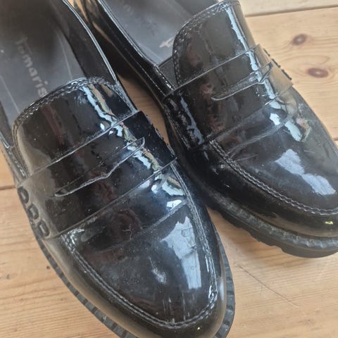 Sort lak med krokodille tryg. De er ikke brugt særlig meget.
