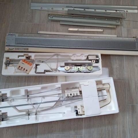 Der er ingen strikkemaskine, kun det tilbehør til den, man kan se på billedet.