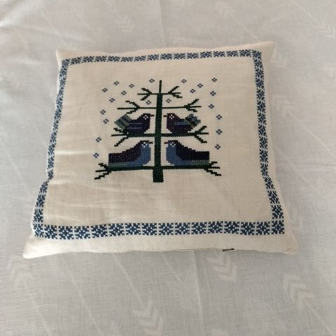 Broderet sofa pude med flot blomstermotiv