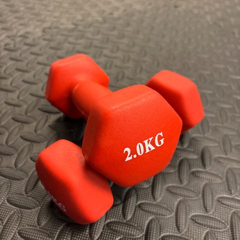 Jeg sælger 2 grå håndvægte der hver vejer 1 kg