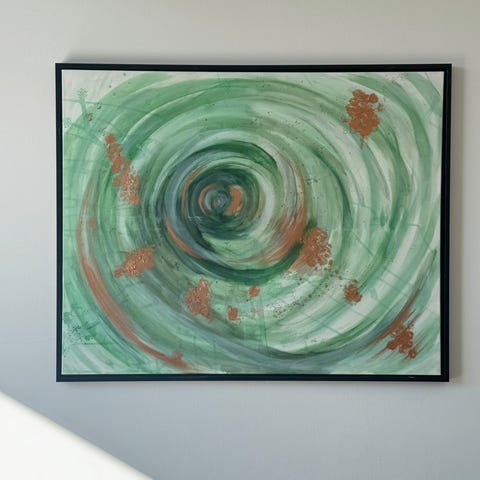 Maleriet måler cirka 83 X 63 cm og er udført på lærred spændt op på en sort træramme.