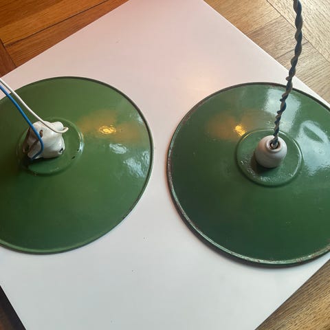 Tre charmerende franske antikke lamper som synes at have sidder i kupeerne i togvogne.