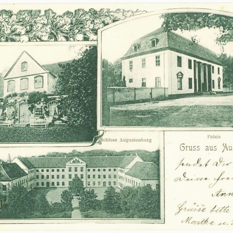 Augustenborg. To-delt postkort fra 1902