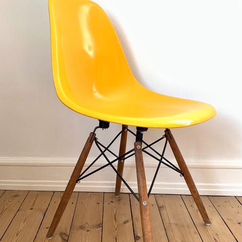 Designet af Ray & Charles Eames i 1950’erne og produceret af Herman Miller og Vitra, jf. mærkningen på stolens underside. Skal afhentes i Nordhavn.