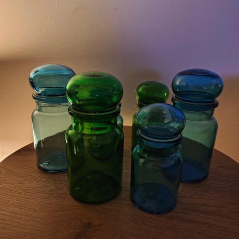Div formpresset glas med korkprop priser er : små 20kr stk