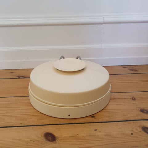 Vægten har en rund analog skala med tydelige måleenheder op til 150 kg