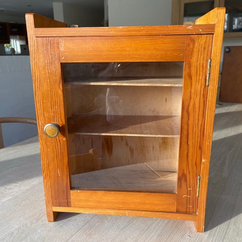 Gammelt medicin skab med den lækreste patina.. mega fedt og rustikt, og med den fineste hængsel til lukning. Mål B37 D19 H54 pris 495,-