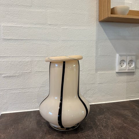 Vasen har en cylindrisk form med en smal åbning og kan anvendes til dekoration eller til at holde blomster.