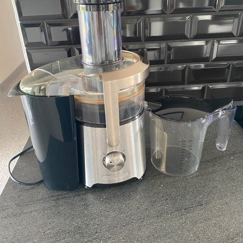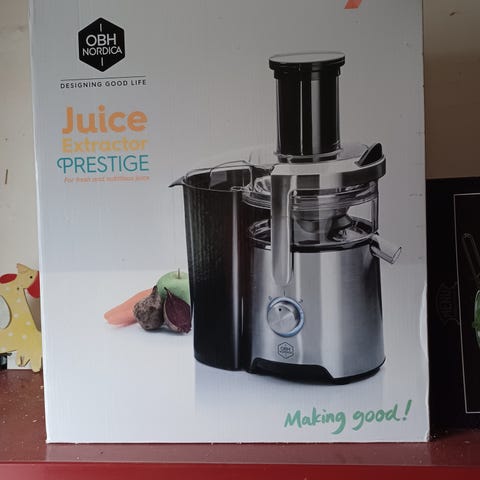 Maskinen har en stor påfyldningsåbning og en gennemsigtig beholder til juice. Velegnet til fremstilling af frisk juice fra frugt og grøntsager.
