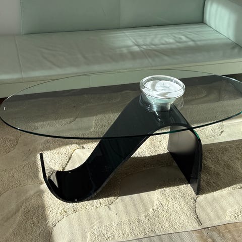 Sofabord med glasplade og plexiglas-ben