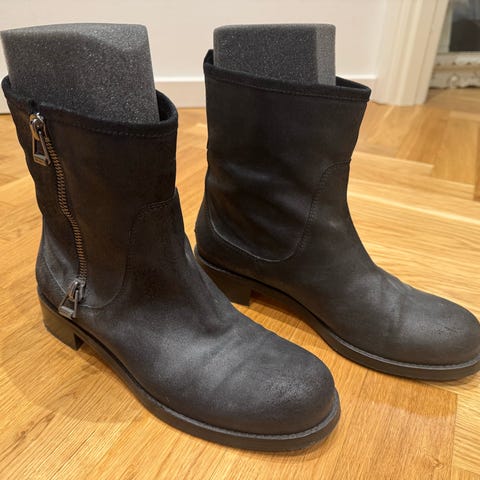 Støvler, str. 39,5, Jimmy Choo, Sort, Læder, Næsten som ny, Super lækre støvler fra Jimmy Choo i råt læder. Størrelse 39,5. Støvlerne er i rigtig fin stand.