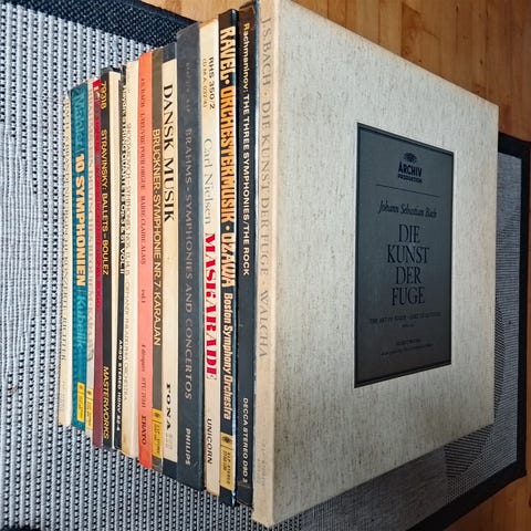 Polyphon vinylplader fra Musik Huset med forskellige musiknumre. Pladerne er i standard 78 rpm format og har etiketter med Polyphon logo. Indeholder klassiske optagelser med forskellige orkestre og dirigenter. Egnet til samlere og musikinteresserede.