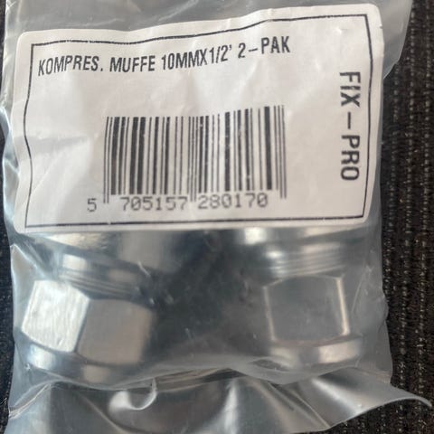 2 x Kompressions muffe 10 mm x 1/2" messing vvs