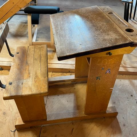 Gammel skolepult / Skolebænk.