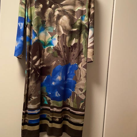 Betty Barclay Andre kjoler kvindedragt i størrelse 44. Kjolen er brun med et mønstret design leopard. Den har trekvart e ærmer og rundhalsudskæring med ombuk.