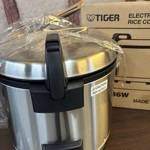 Tiger 3.6L Riskokare i rostfritt stål med en kapacitet på 3.6 liter. Utrustad med elektrisk anslutning och kontrollpanel för enkel användning. Passar för tillagning av ris och andra spannmålsprodukter i kommersiella eller privata kök.