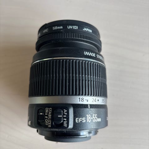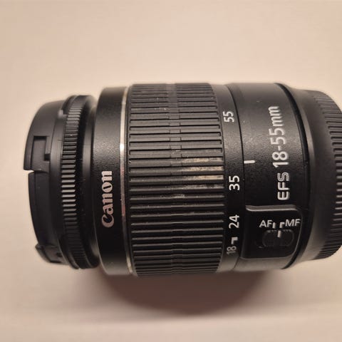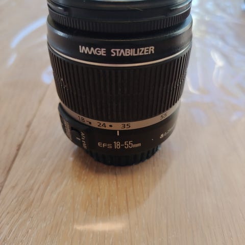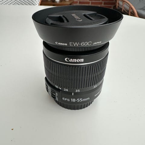 Canon EF-S 18-55mm f/3.5-5.6 IS STM Kameraobjektiv med optisk billedstabilisering og STM-motor til stille autofokus. Objektivet har en brændvidde på 18-55mm og en blænde på f/3.5-5.6. Passer til Canon kameraer med EF-S fatning.