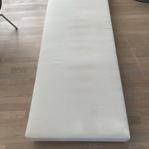 Ilva Opus madras med betræk i lys farve. Madras er designet til enkeltseng og har en fast overflade. Materialet og størrelsen er velegnet til standard enkeltsenge 90x200cm. Begge madrasser er blevet renset med Kärcher dampmaskine, og er klar til nyt hjem. Den ene har dog synlige brugsspor, som skete under rensningen med dampmaskine - dog fremstår begge funktionelt.