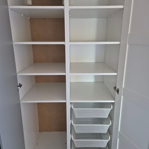 Hvide hylder og 100 cm bøjlestænger medfølger ikke.