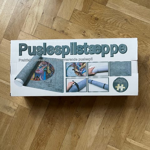 Man bruger den hvide til at rulle puslespil 🧩 om sig, når det ligger på tæppet .