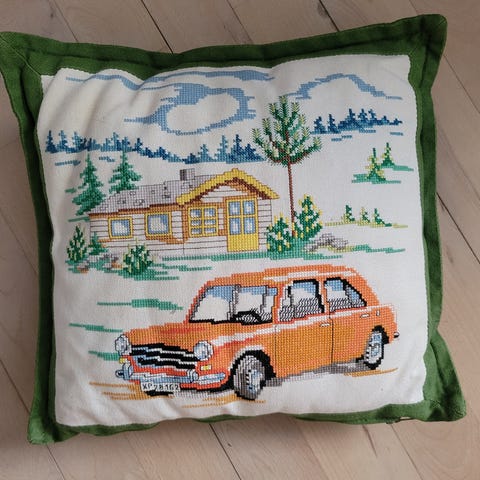 Broderet bilpude pyntepude til veteranbil