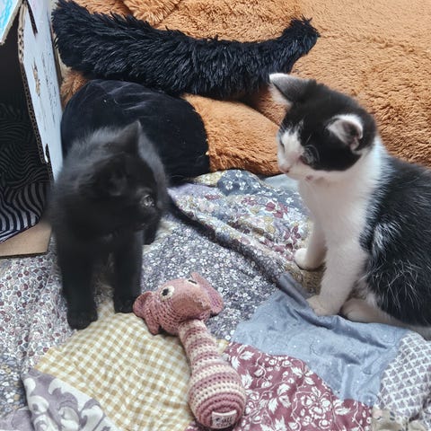 To skønne killinger der søger et kærligt hjem, helst med adgang ud når de har vænnet sig til det nye hjem.