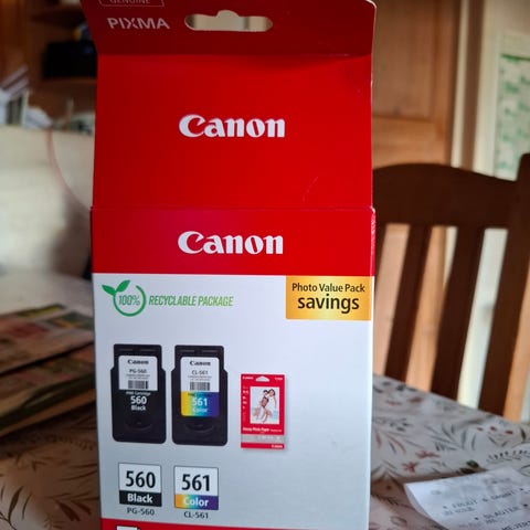 Sort og farve-blæk til genopfyldning af Canon megatank printer. Tre flasker med sort blæk (1 falske original canonblæk, 2 flasker kompatibel blæk), samt tre flasker farvet blæk (kompatibel blæk). Købt hos InkPro for et år siden, aktuel nypris fremgår af det vedlagte billede (samlet værdi 310,- kr.). Blækket passer til de printere, der er oplistet på det andet billede. Sælges billigt, da jeg ikke har printeren længere. Kom evt. med et rimeligt bud….