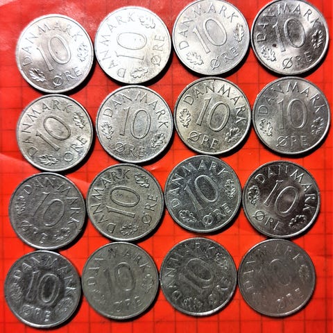 Mønter, 16 x 10 ØRE - Margrethe II - Komplet sæt