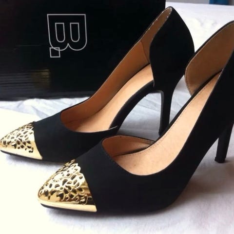 Stiletter, sort lak. Hælhøjde 7cm. Kun brugt en gang.