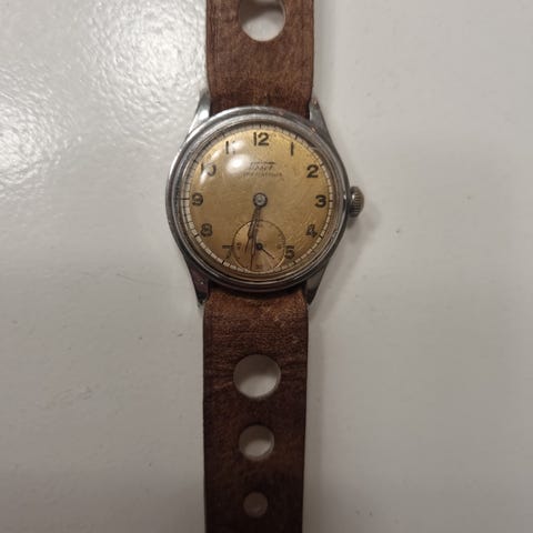 Virkelig pænt og velholdt vintage Tissot Rockwatch, model: R150 #908 i blålig granit og med de karakteristiske røde og gule visere. Ø: 30 mm. Batteri er skiftet i foråret 2025. Uret er med original og rigtig pæn Tissot rem. Desuden medfølger Tissot æske.
