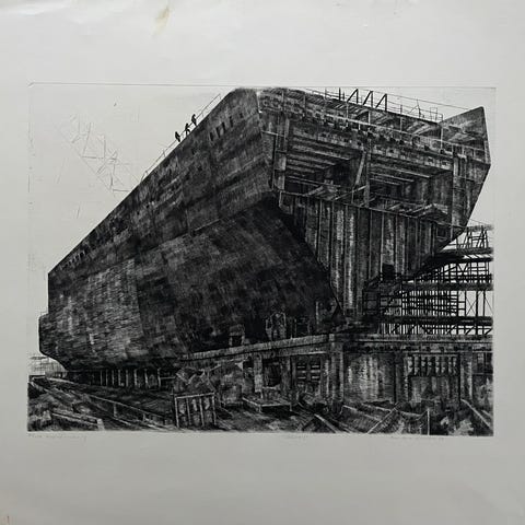 Klassisk lækkert sort hvid litografi "Byggeplads" af Poul Skov Sørensen
